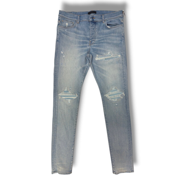 Pre Owned Amiri MX1 Blue Size 36W Some signs of general use/wear. No major flaws or damages, minor signs of general use. (Retails @ $1090) Read more.