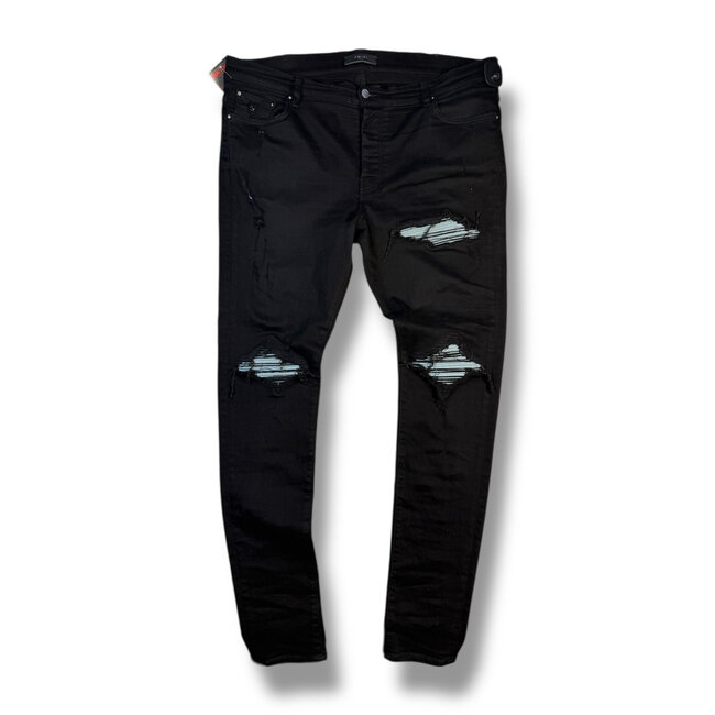 Amiri MX1 Blue Suede Distressed Black Jeans Size 36
